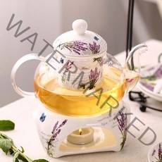 라벤더 유리 티팟과 워머 세트, 다관(19 x 11.5 cm), 워머(6.5 x 13.5 cm)