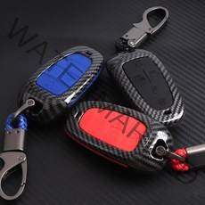 포원) 투싼NX4 N라인 카본 하이브리드 스마트키 케이스 키홀더 커버 악세사리, 5버튼 키케이스(레드) + 키링(레드)